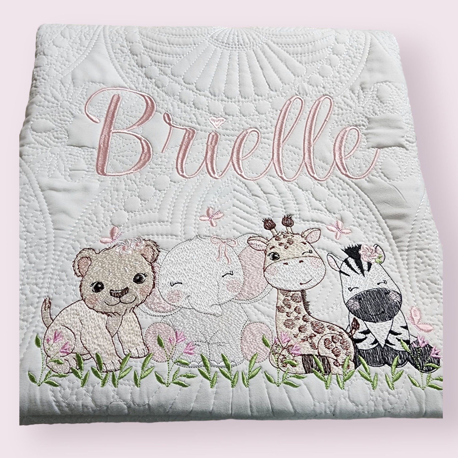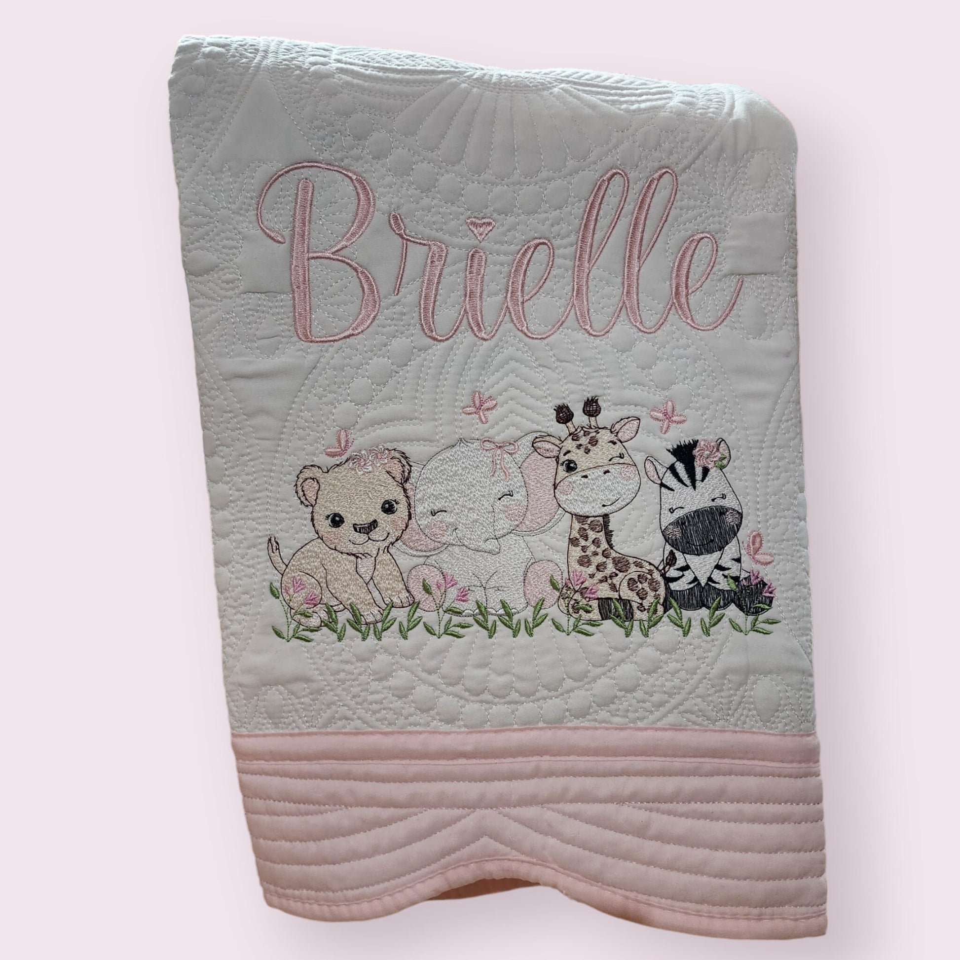 Personalized Quilted Baby Blanket with Embroidered Name and Animals