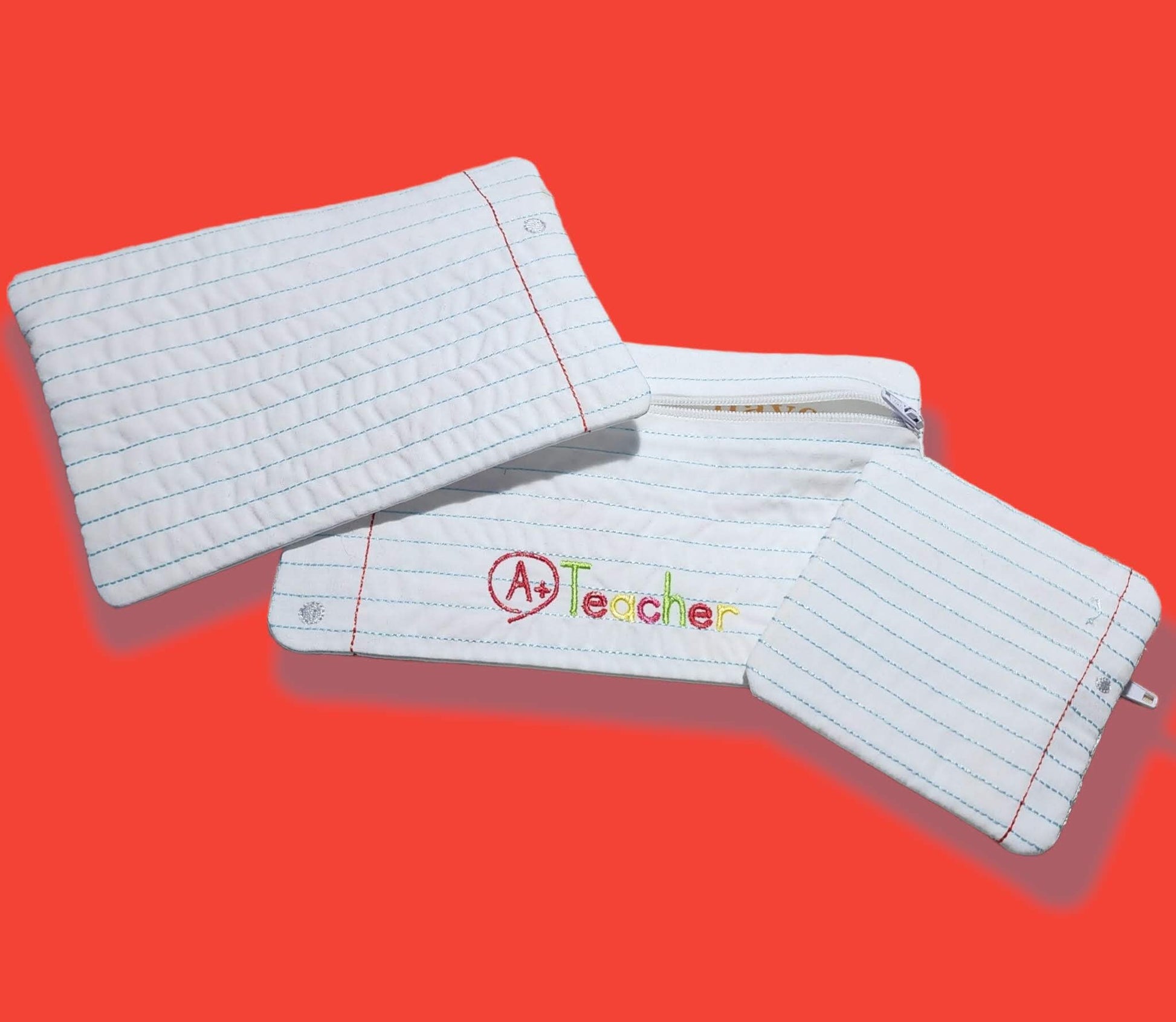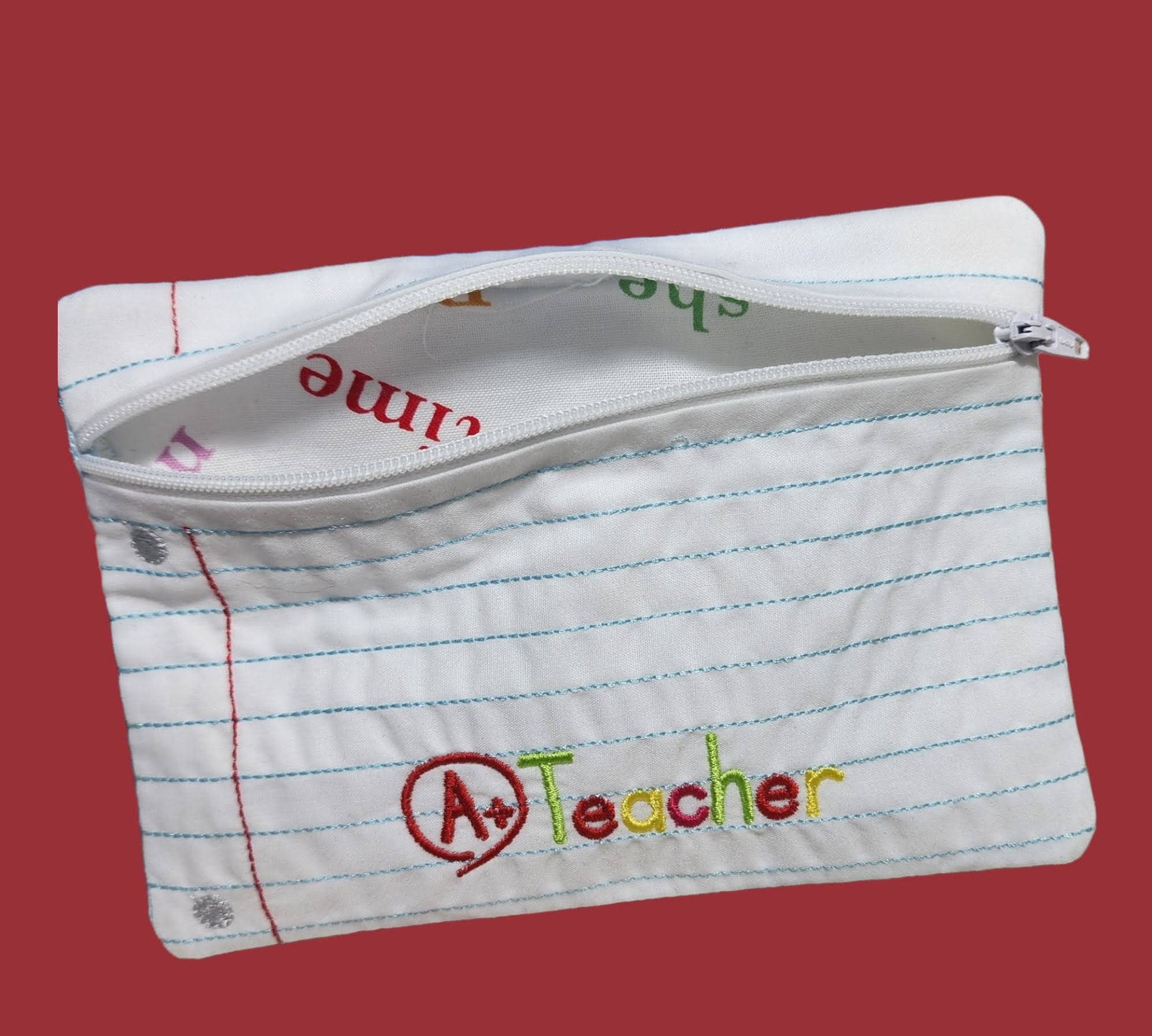 This A+ Teacher zipper pouch is the perfect gift for your favorite teacher! It's handmade with a school-themed lining, and available in three different sizes. The small size is perfect for carrying change, while the large size is great for holding dry erase markers and other desk supplies. No matter which size you choose, your teacher will appreciate the thoughtfulness of this gift!
